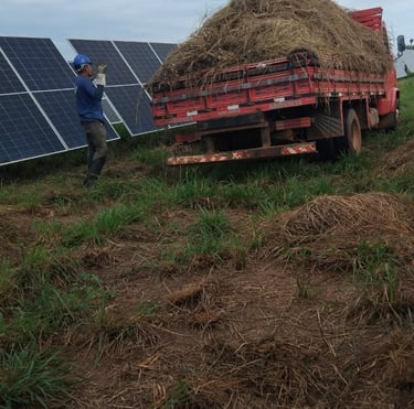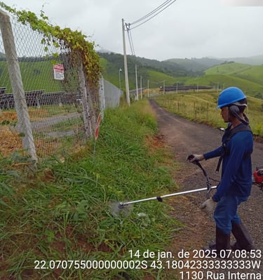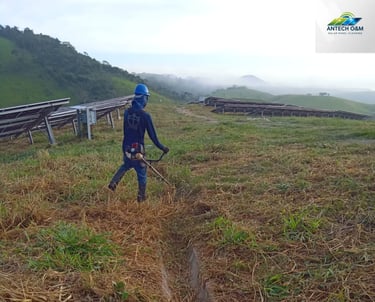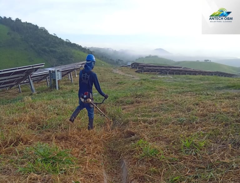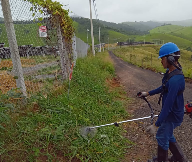 Controle de vegetação e roçagem para manter a eficiência das usinas solares em operação.